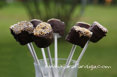 Barnen brukar tjata på mig att jag ska baka Cupcakepops, tyvärr tar det ganska lång tid att göra dessa. Ett snabbvariant är i stället att ta en kakpinne/klubba, sätta på en Marshmallow och doppa den i mörk choklad som fått smälta i ett vattenbad och dekorera med strössel. Det gjorde vi och åt som vårt lördagsgodis idag 🙂 Mums….